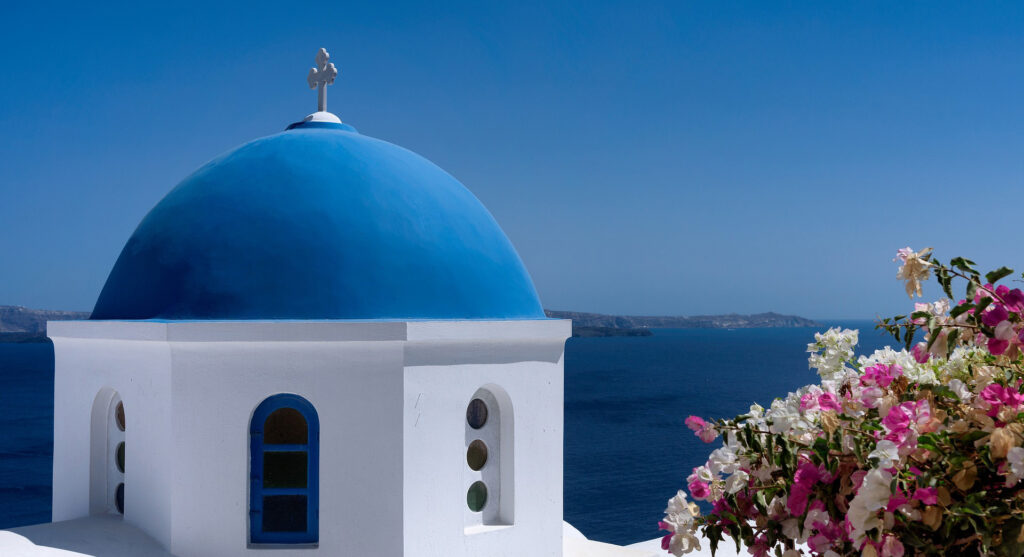 細い坂道を上ると青い屋根が印象的な教会が見えてきます。教会前のレストランで食事をしたり、古い民家を改造したお洒落なカフェで時間を過ごすのも楽しいです。ここは近隣の海の中でも歴史の古い地方なので、豊かな自然の中に今も繁栄する街があり、海や山でのアクティビティもあります。